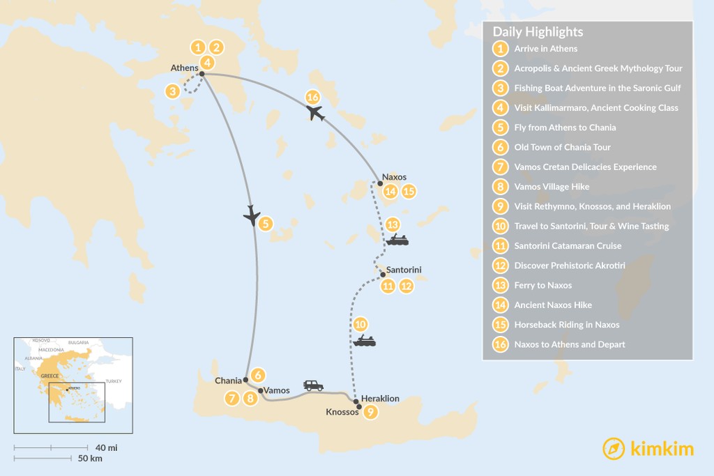 Map of Authentic Greek Adventure: Athens to the Cyclades – 16 Days