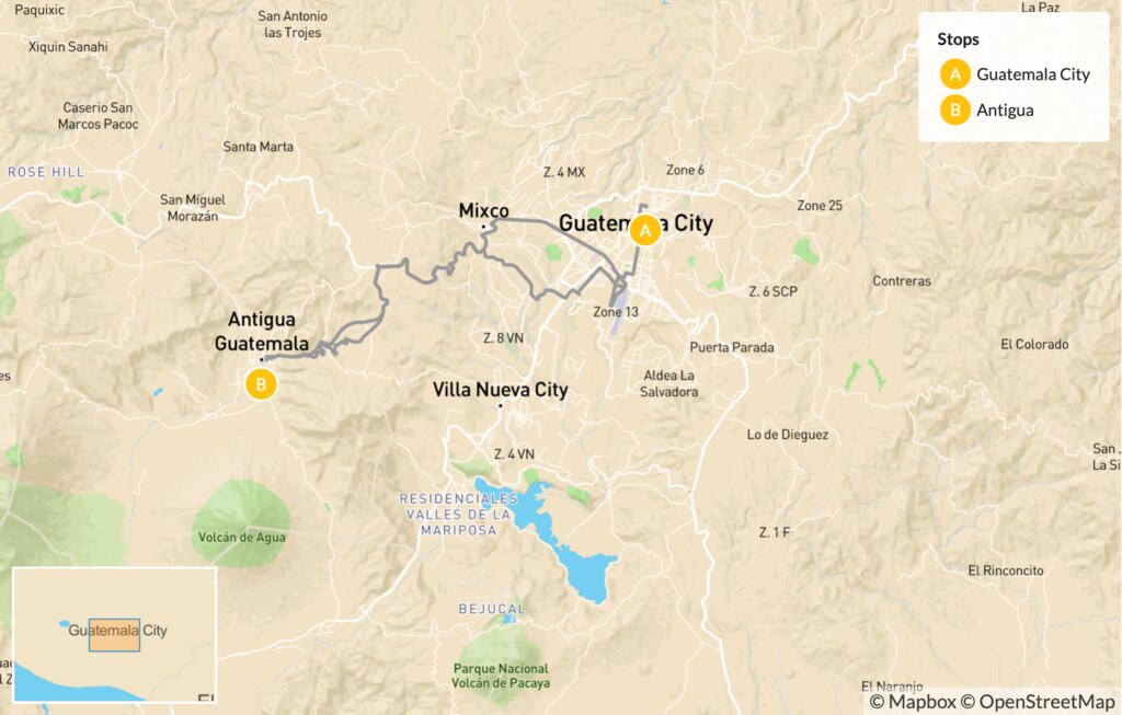 Map of Authentic Guatemala: Antigua & Guatemala City – 6 Days