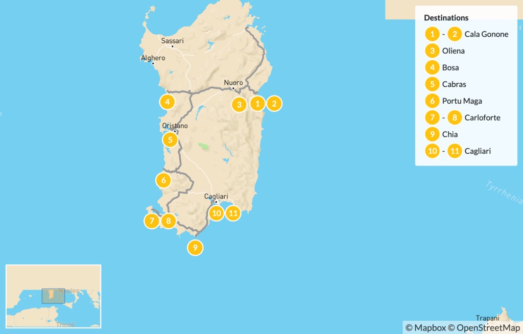 Map of Authentic Sardinia Drive & Hike – 12 days