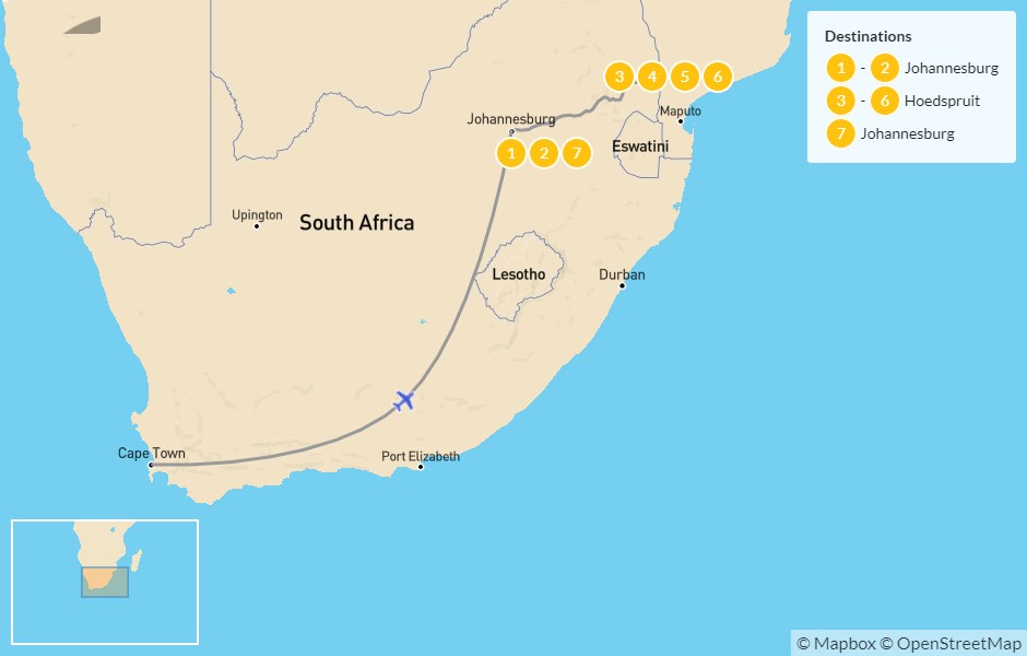 Map of Authentic South Africa: Johannesburg to Kruger National Park – 8 Days