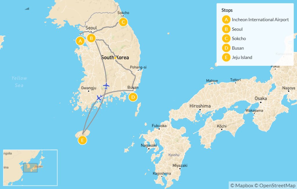 Map of Autumn Colors & Local Culture in South Korea – 10 Days