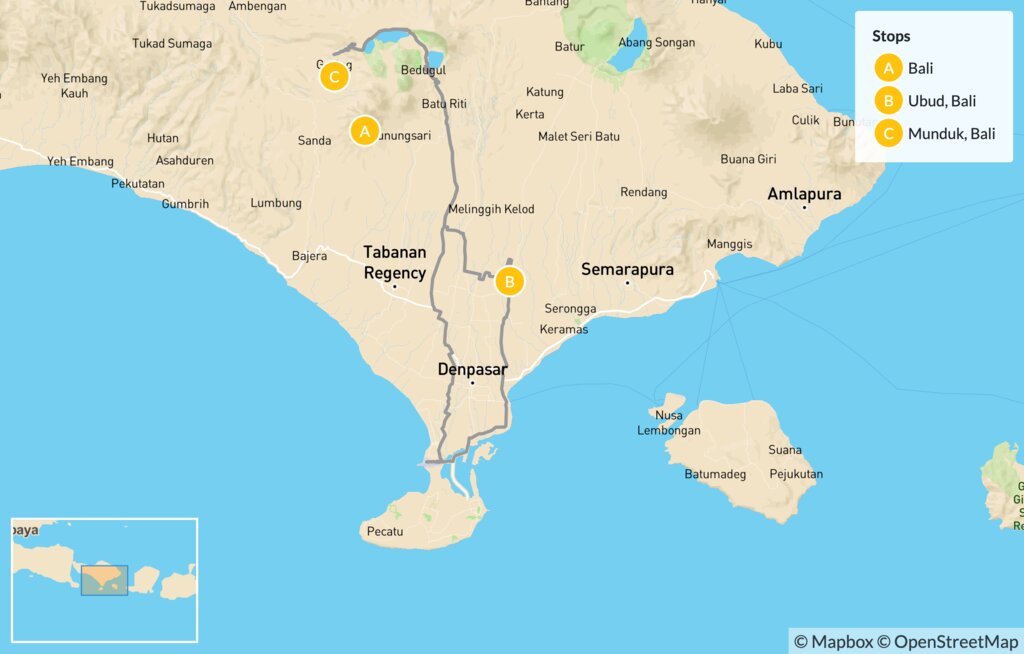Map of Bali Adventure for Active Families: Ubud & Munduk – 7 Days
