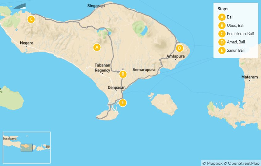 Map of Bali Adventure: Temples, Jungles & Beaches – 13 Days