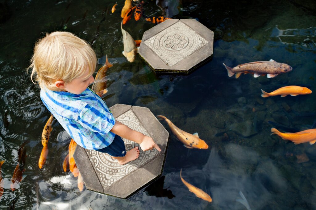 Your next stop is the mid-20th century Tirta Gangga Water Palace, a stunning spot where you can enjoy a peaceful family walk. The highlight is the water garden, with ponds, stepping stones, fountains, and sacred springs. Kids will be delighted to help feed the koi fish that swim in the ponds.