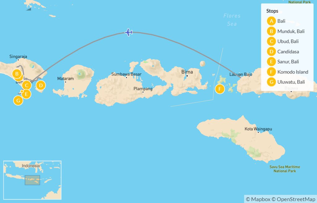 Map of Bali’s Temples & Waterfalls with Komodo Islands Cruise – 15 Days