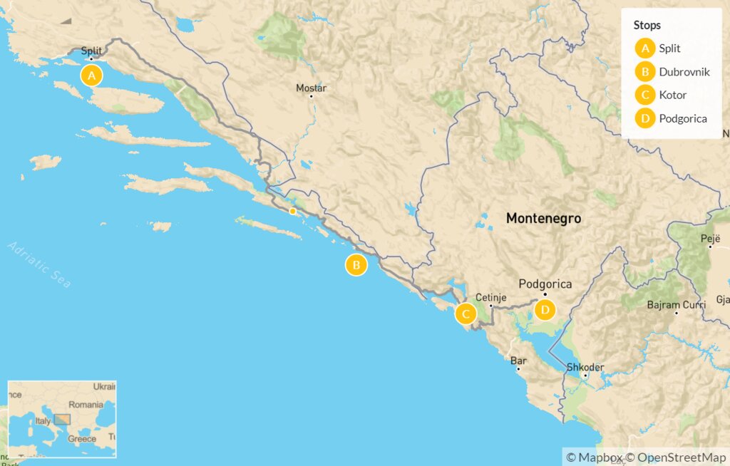 Map of Balkan Coastal Adventure: Split, Dubrovnik & Kotor – 7 Days