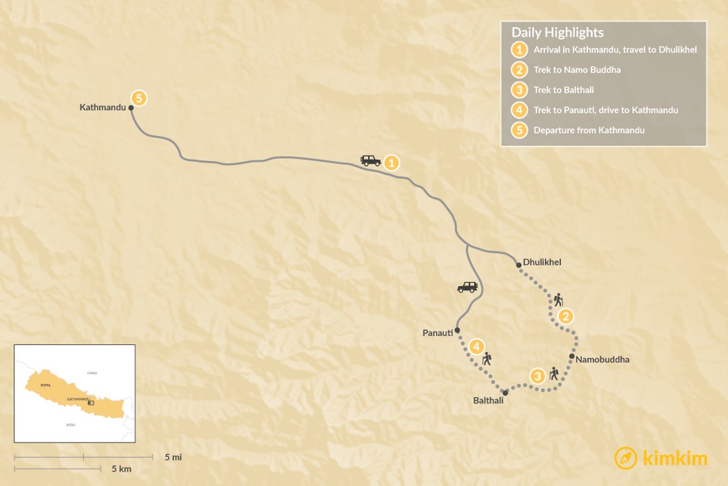 | Day 4 | Trek to Panauti, Transfer to Kathmandu | Kathmandu |
