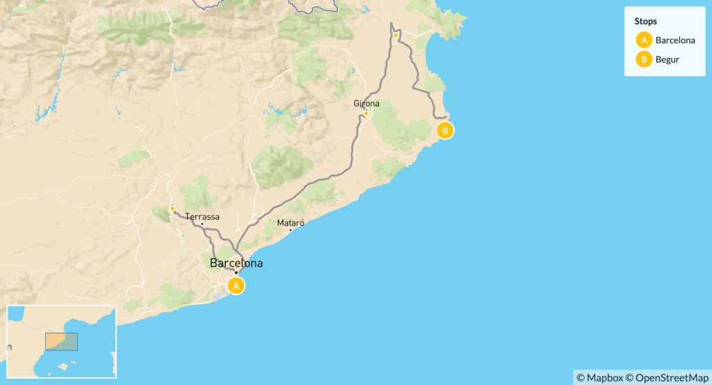 It’s time to say goodbye to Barcelona and hello to the stunning Costa Brava, a 125-mile (200 km) stretch of coast in the north of Catalonia. In the morning, a driver will pick you up at your hotel for the transfer to the medieval coastal village of Begur, one of the highlights of the region. In total, the drive takes about 1.5 hours, but you’ll make a couple of special stops along the way.
