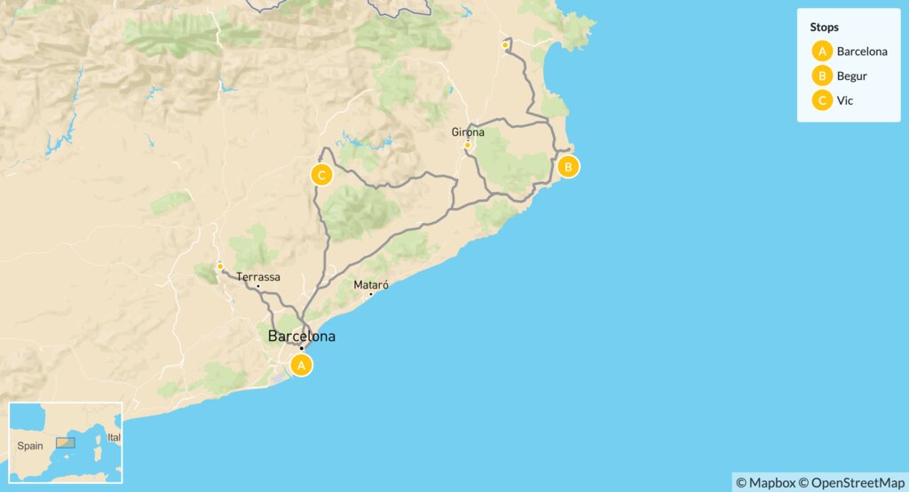 Map of Barcelona & the Costa Brava – 14 Days