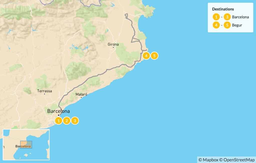 It’s time to say farewell to Begur! At the designated time, a driver will pick you up at your hotel for the transfer to Barcelona. Upon arrival in the city, you’ll be dropped off at either Barcelona El Prat airport or Barcelona Sants train station to connect with your onward journey. Buen Viaje!