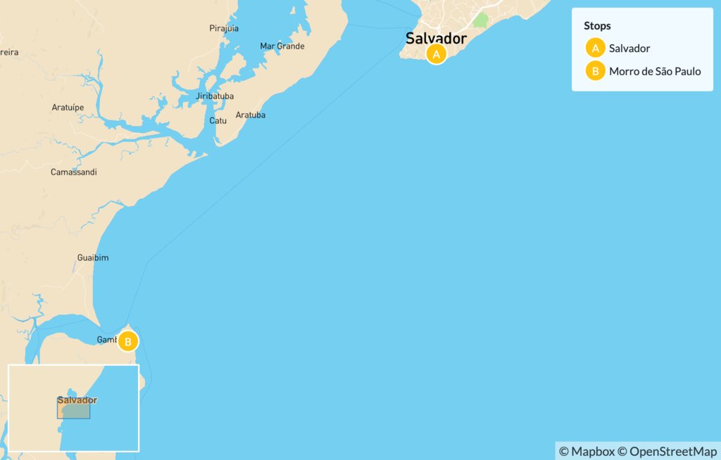 Map of Beaches & Culture in Bahia: Salvador to Morro de São Paulo – 5 Days