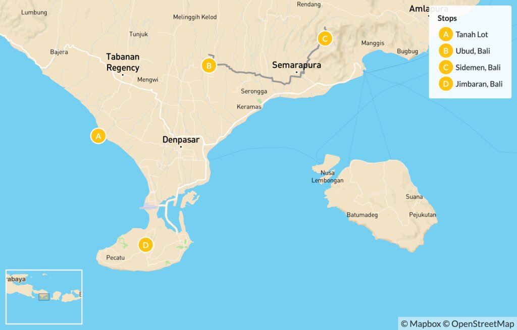 Map of Beautiful Bali: Tanah Lot, Ubud, Sideman & Jimbaran – 8 Days