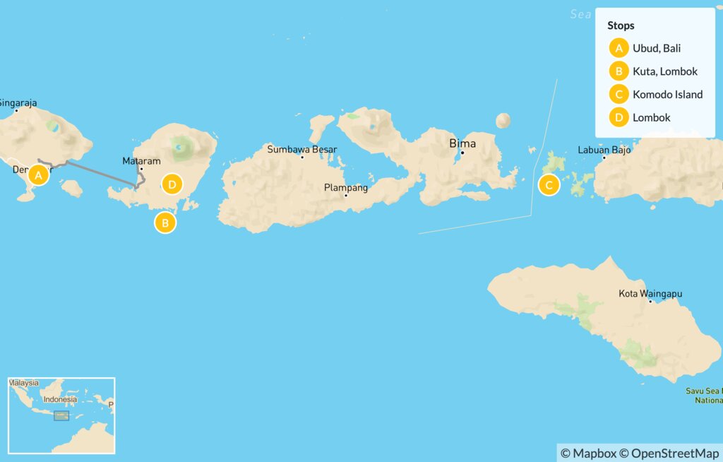 Map of Beautiful Beaches of Lombok & Komodo – 5 Days