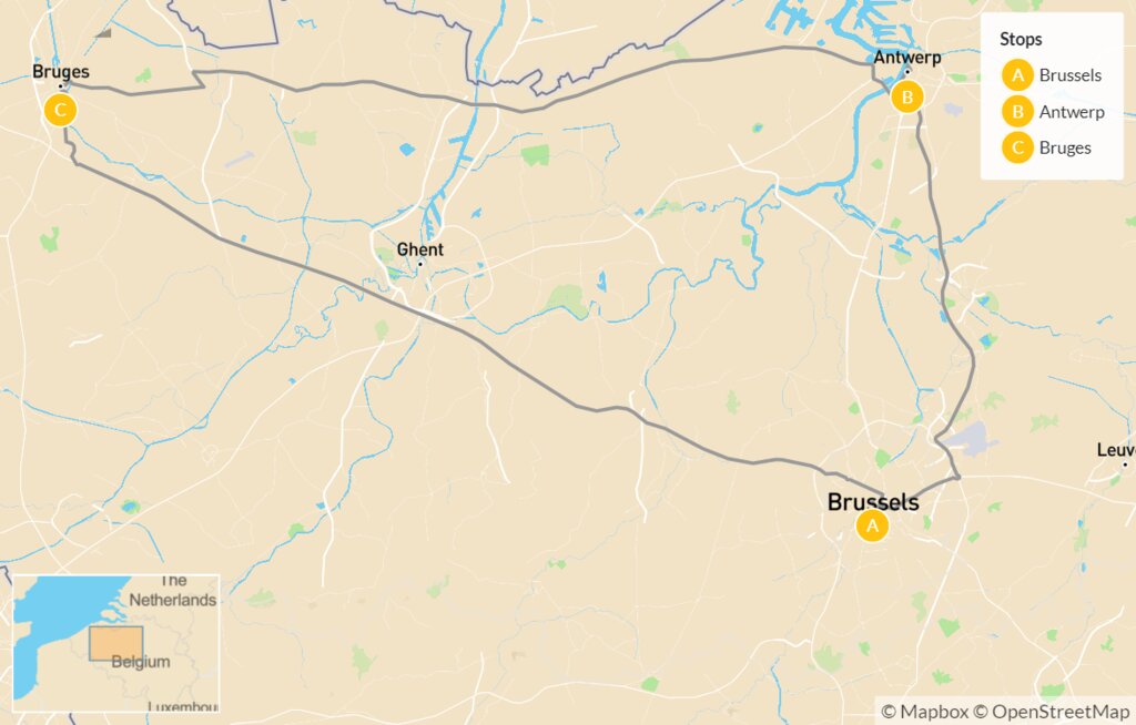 Map of Belgian Art Tour of Antwerp, Bruges & Brussels – 7 Days