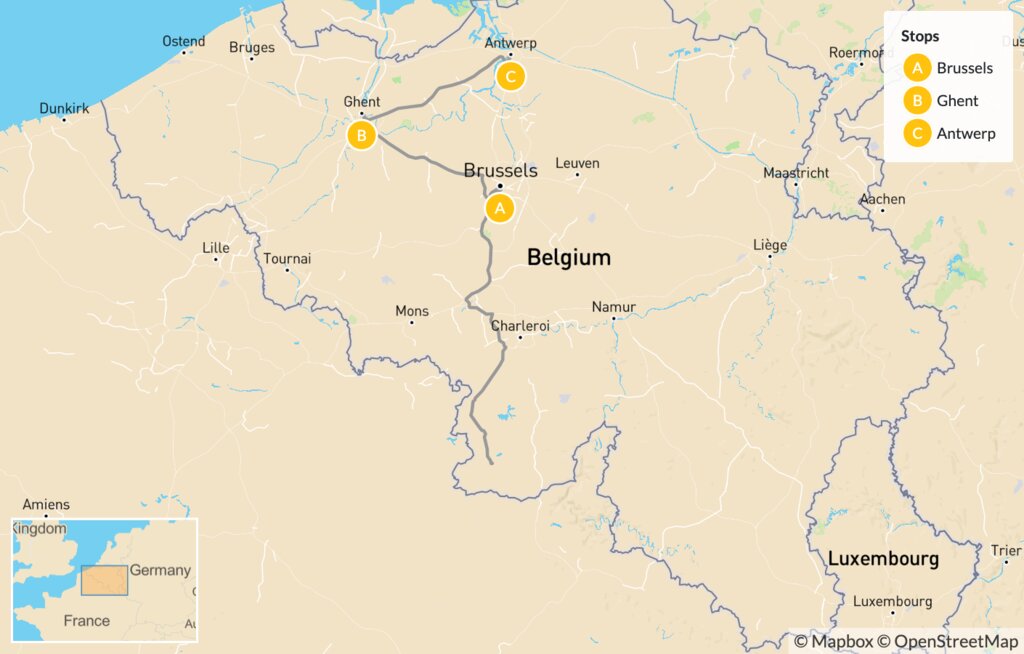 Map of Belgium Culinary Highlights: Ghent, Antwerp & Brussels – 7 Days