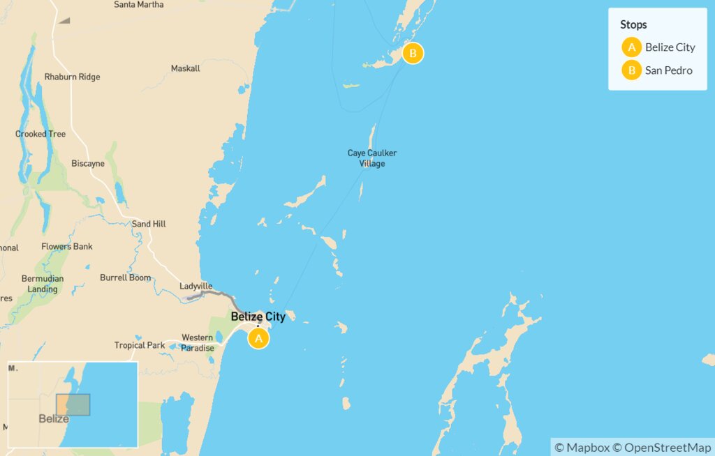 Map of Belize Beach Escape: Snorkeling, Diving & Sailing at Ambergris Caye – 7 Days