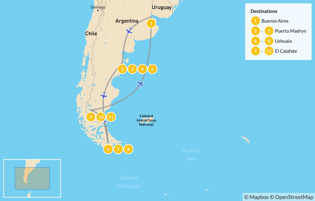 | Day 6 | Fly to Ushuaia – Explore the City | Ushuaia |