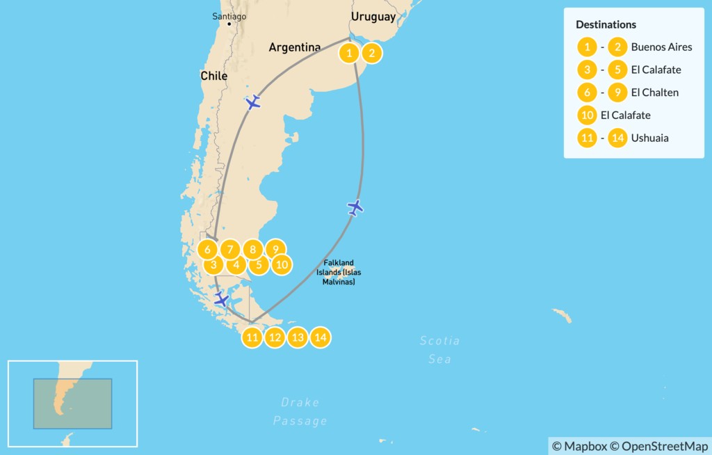 | Day 15 | Fly from Ushuaia to Buenos Aires – Departure |