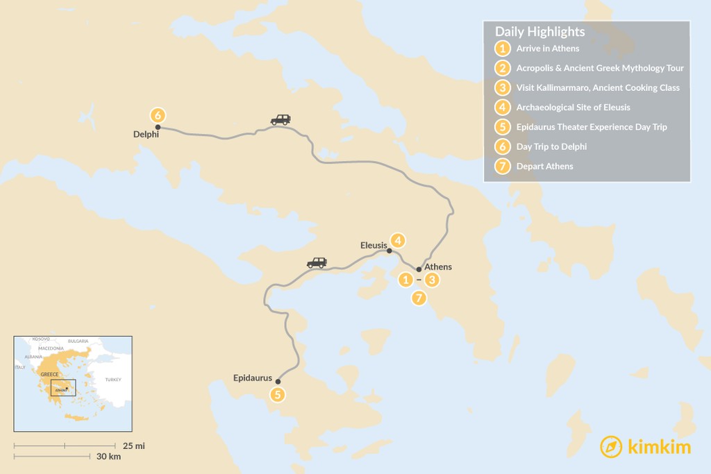 Map of Best of Athens & Ancient Greece – 7 Days