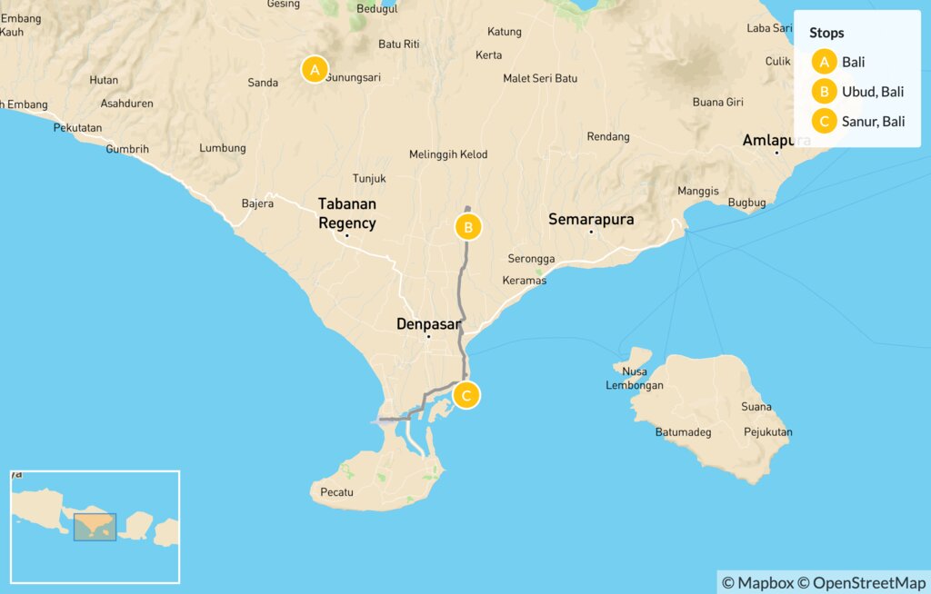 Map of Best of Bali for Families: Ubud & Sanur – 7 Days