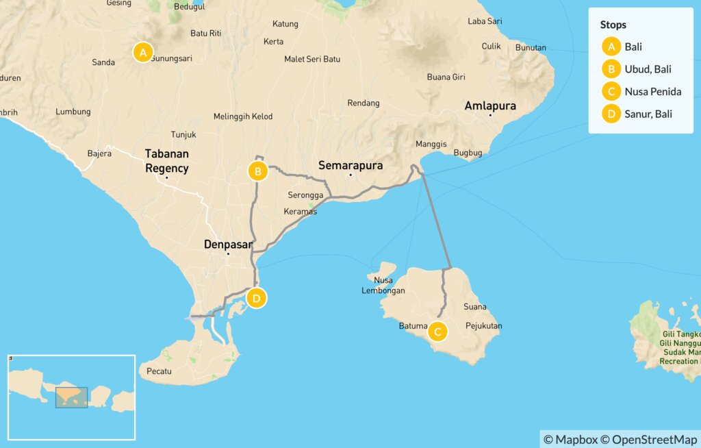 Map of Best of Bali & Nusa Penida for Families – 10 Days
