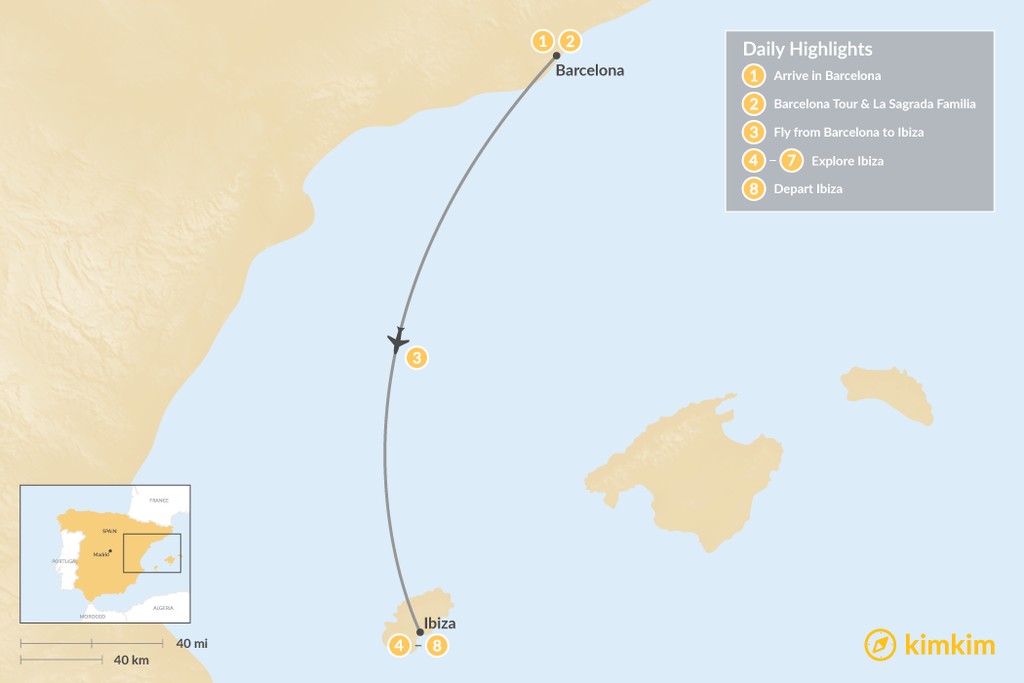 This 8-day itinerary is pure holiday bliss on the Mediterranean. Kick off the trip in Barcelona, an enchanting European city that needs no introduction, where you’ll have a few days to explore Gaudi’s architectural masterpieces and the popular gastro scene (i.e. tapas galore). From here, you’ll jet off to the capital of cool—Ibiza island—for five days of white-sand beaches, sparkling seas, and serious bohemian relaxation.
