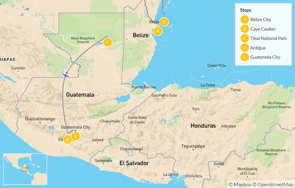 Welcome to Belize! Few places are better for a weeklong getaway than this small Caribbean country with outsized attractions. Many of Belize’s highlights are natural, such as its tropical forests, coral islands, and vast barrier reef. Another great reason to visit is the rich culture, which derives from the Garifuna heritage of its people. Garifunas are descendants of mixed free African and Indigenous people exiled to Central America from the Caribbean in the 18th century. The result is an English-speaking Afro-Caribbean culture with great music and food to go along with the beautiful scenery.