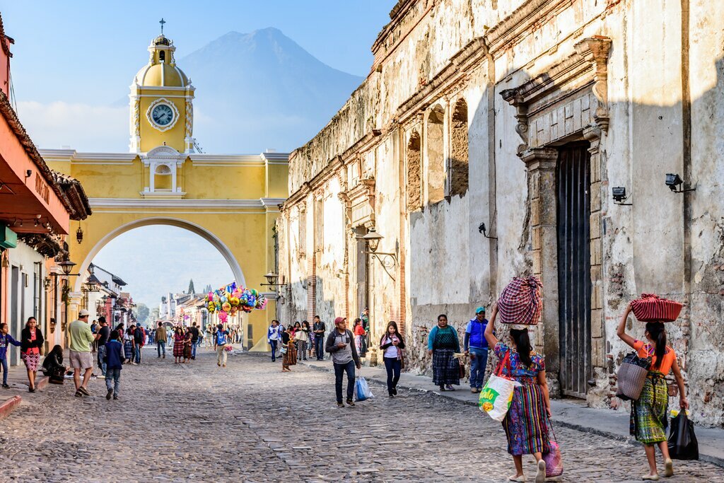 After the tour, it’s an hour’s drive to the airport in the lakeside town of Flores. There, you’ll board an hour-long flight to Antigua. Located in Guatemala’s southern highlands and founded in 1542, this UNESCO-listed city is known for the Spanish colonial Old Town around its main plaza. Three volcanoes surround the city, and the contrast between these imposing mountains and Antigua’s colorful architecture creates one of the best skylines in the country. After checking into your hotel, feel free to spend the rest of the day strolling the cobbled streets and browsing handicrafts and hand-woven textiles.