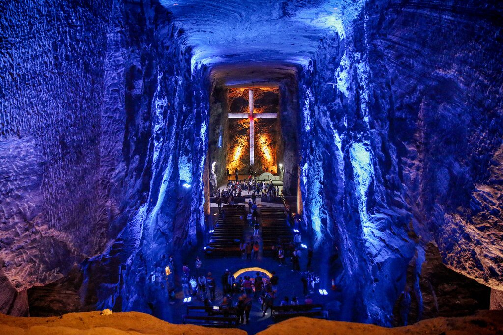 Besides its distinctive historic charm, Zipaquirá is famous for its underground Salt Cathedral. Miners carried out this feat of engineering to demonstrate their devotion to God. The cathedral has lit sculptures representing the twelve stations of the cross and an impressive cavelike altar. Your local tour guide will take you through the tunnels of this place of worship and explain the history that lies deep within the ground.
