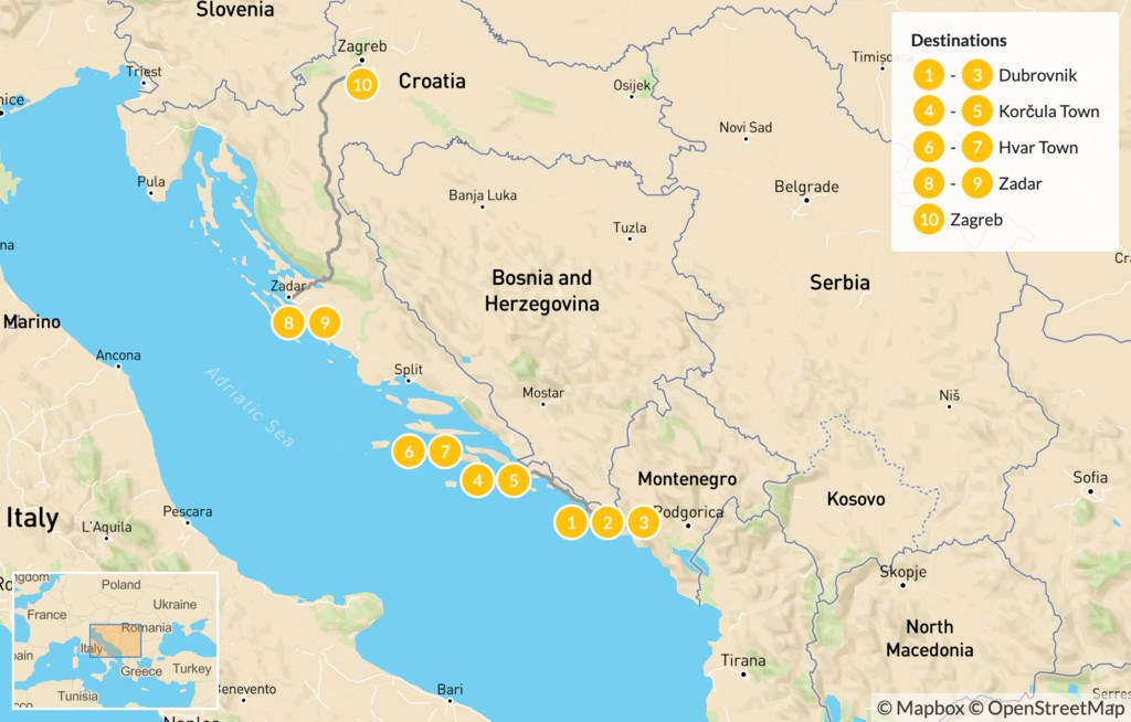 Map of Best of Croatia: Dubrovnik to Zagreb – 11 Days