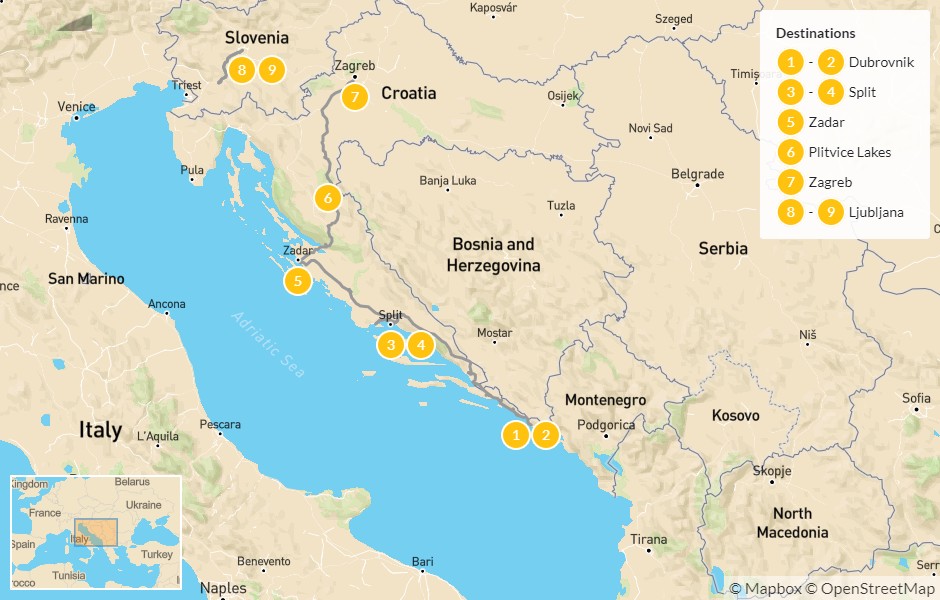 Map of Best of Croatia & Slovenia: Dubrovnik to Ljubljana – 10 Days