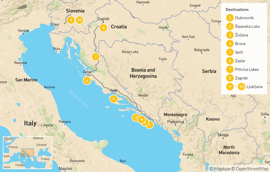 Map of Best of Croatia & Slovenia: Dubrovnik to Ljubljana – 11 Days