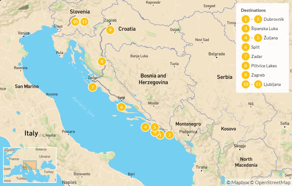 Map of Best of Croatia & Slovenia: Dubrovnik to Ljubljana – 12 Days