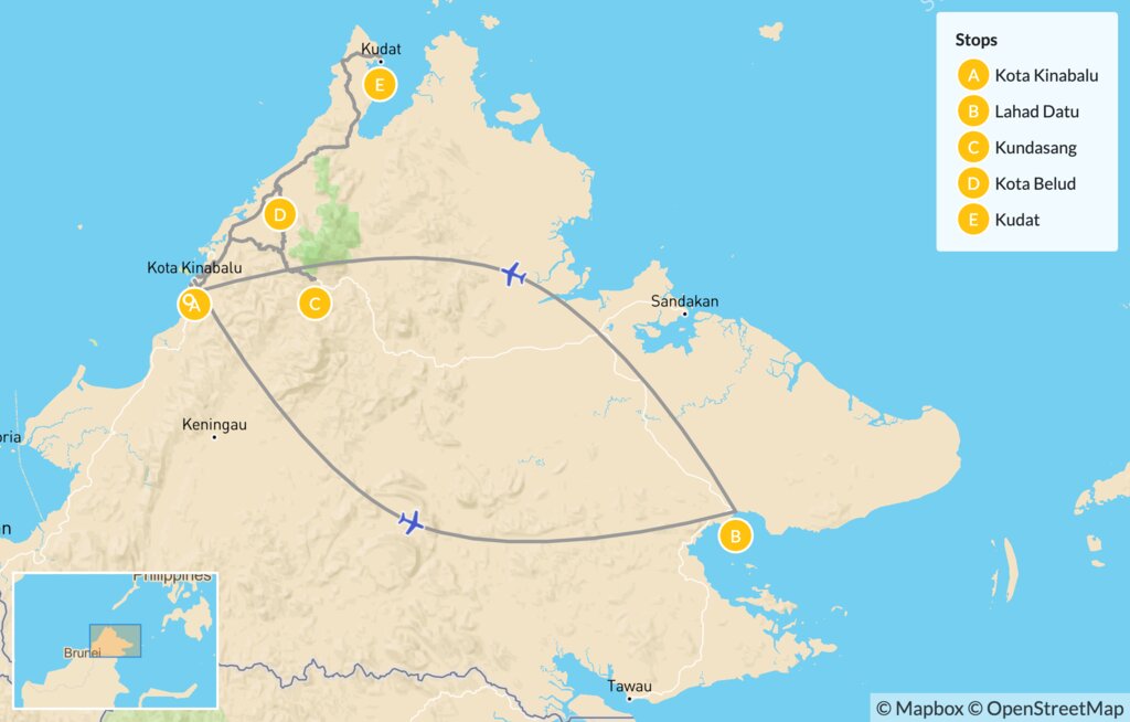 Map of Best of East Malaysia’s Rainforests & Beaches – 10 Days