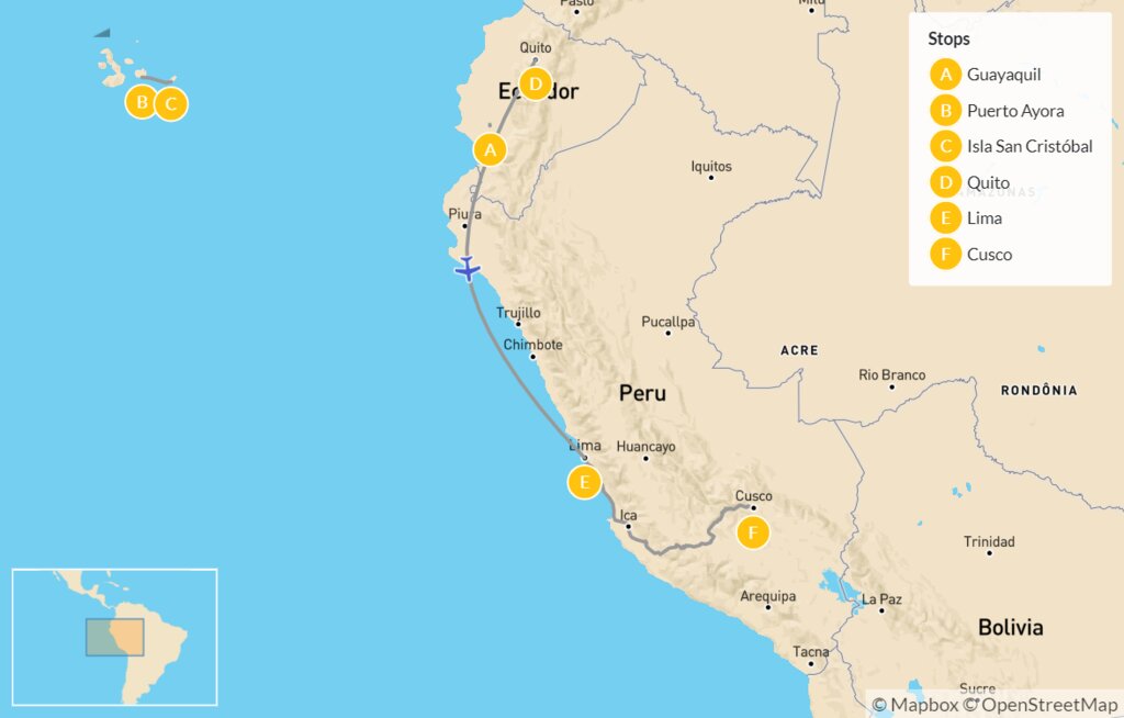 Map of Best of Ecuador & Peru with the Galápagos & Machu Picchu – 14 Days