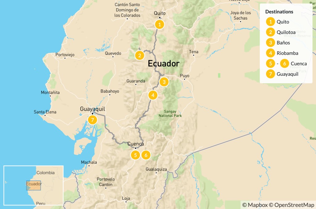 Map of Best of Ecuador: Quito, Quilotoa, Baños, Cuenca & Guayaquil – 8 Days