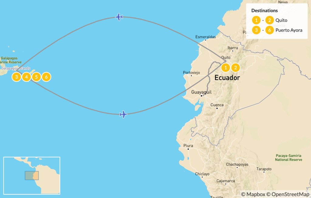 Map of Best of Ecuador: Quito & the Galapagos Islands – 7 Days