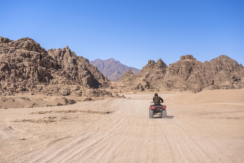 Enjoy a free morning at the hotel in Sharm El-Sheikh, or return to the beach for a refreshing swim. Around 3:00 pm, a driver will meet you at the hotel to transfer you to the Sinai Desert just outside the city. When you arrive, hop on a quad bike to navigate the rugged terrain and have some fun. Next, you’ll head to a Bedouin camp to meet the locals and learn how they’ve lived in the desert for thousands of years. Explore the camp and desert surrounds in style as you mount a camel, offering a higher vantage point of the dunes and dramatic rock formations, and head off with your cameleer guide.