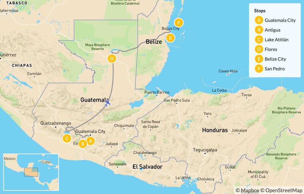 Experience the fascinating culture and natural beauty of Guatemala on a 13-day escape that covers the highlights of not only this Central American gem but of neighboring Belize, too. Starting in Guatemala, you’ll tour ancient Mayan ruins, go hiking, kayaking, and biking, and participate in a spiritual ceremony. Then hop across the border to Belize for Caribbean adventures like cruising on a catamaran and snorkeling in the famous Blue Hole.
