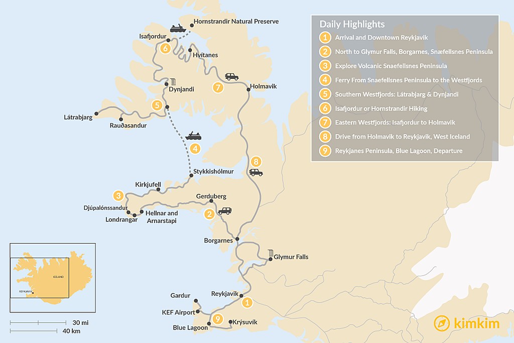 | Day 3 | Ferry From Snaefellsnes Peninsula to the Westfjords | Patreksfjörður |