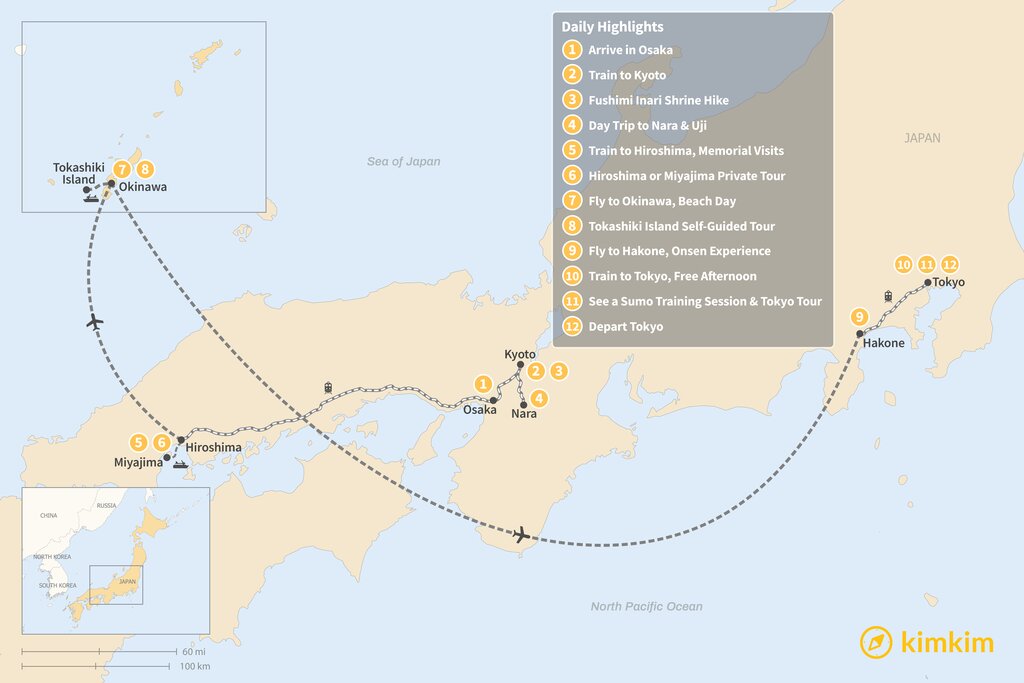 Map of Best of Japan: Osaka to Tokyo – 12 Days
