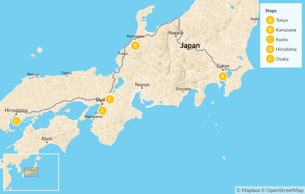 Map of Best of Japan: Tokyo to Osaka – 11 Days