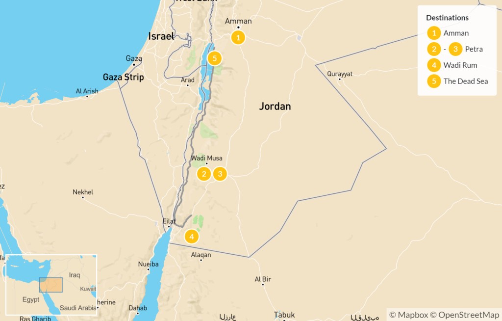 Map of Best of Jordan: Amman, Petra, Wadi Rum, & The Dead Sea – 6 Days