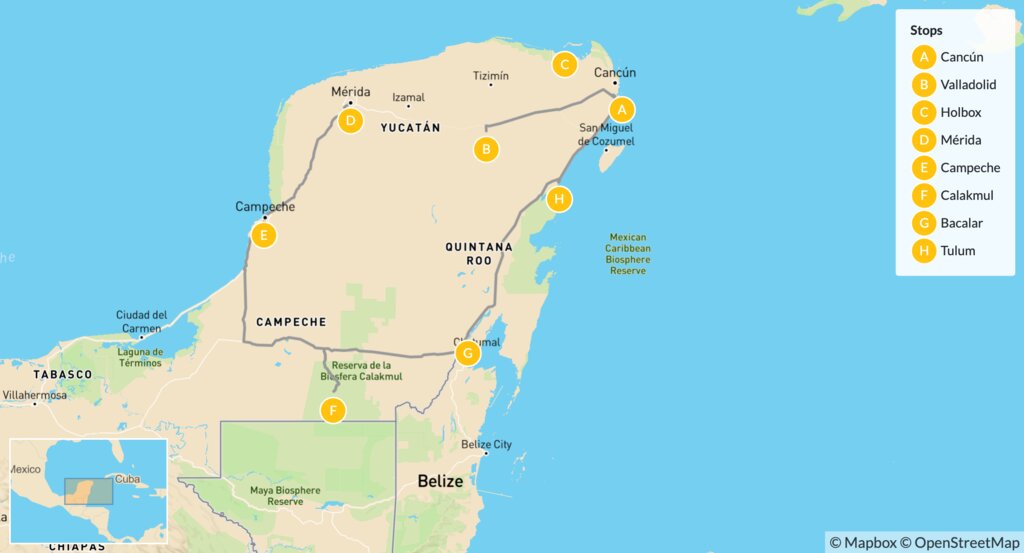Map of Best of Mexico’s Yucatán Peninsula: Cities, Culture & Coast – 14 Days