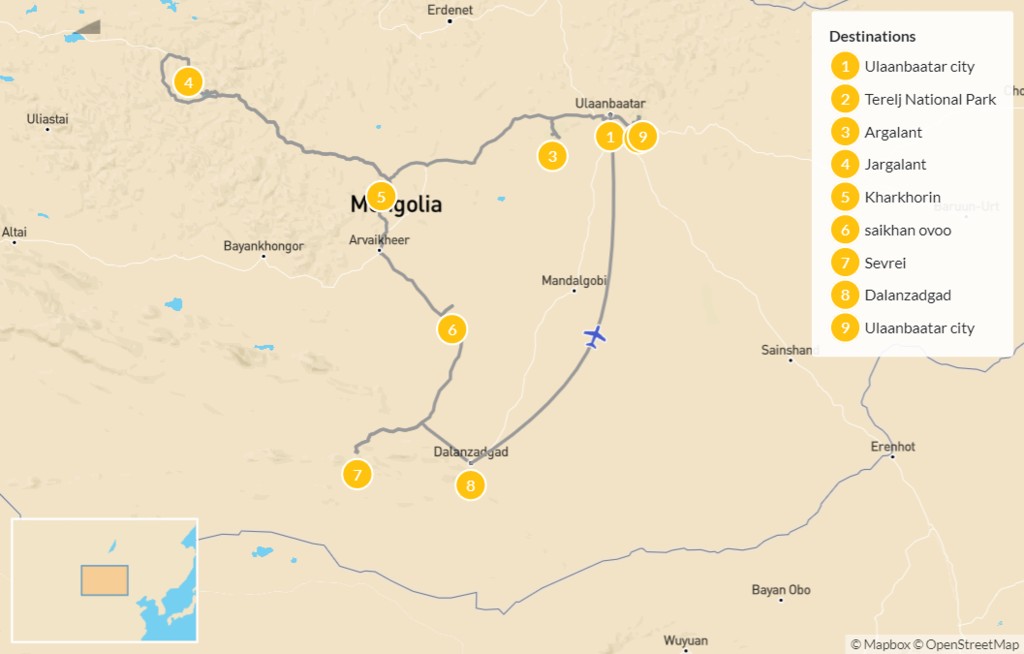 Map of Best of Mongolia – 10 Days