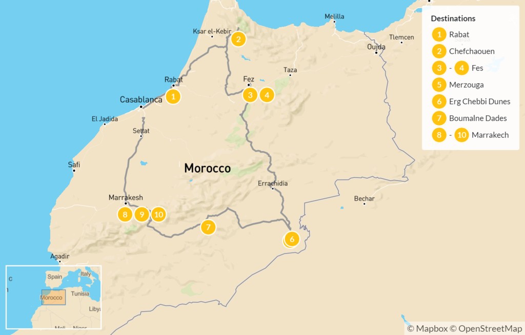 Map of Best of Morocco: Casablanca to Marrakesh – 11 Days