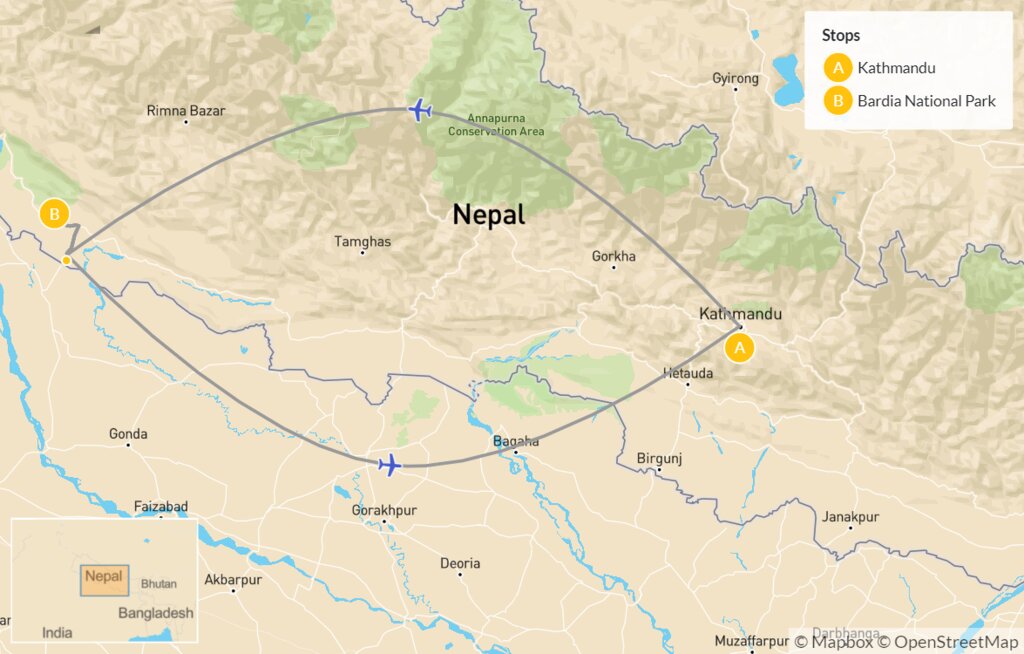 Map of Best of Nepal’s Bardia National Park – 5 Days