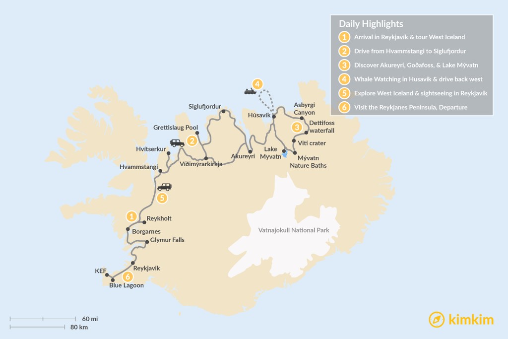 Map of Best of Northern Iceland: Arctic Coast & Lake Mývatn – 6 Days