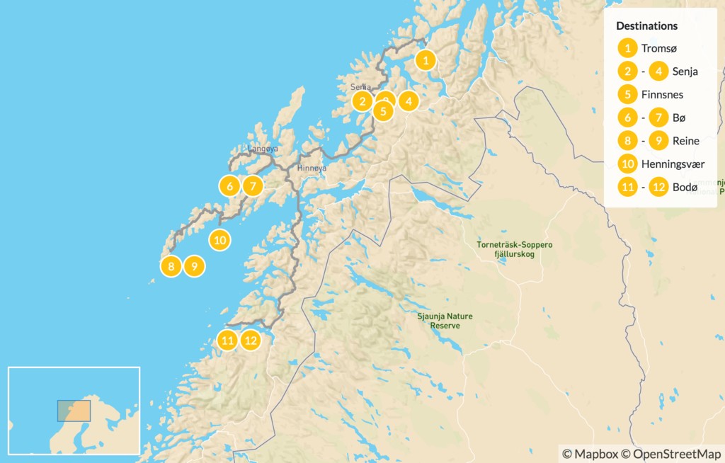 Map of Best of Norway’s Arctic Islands – 13 Days