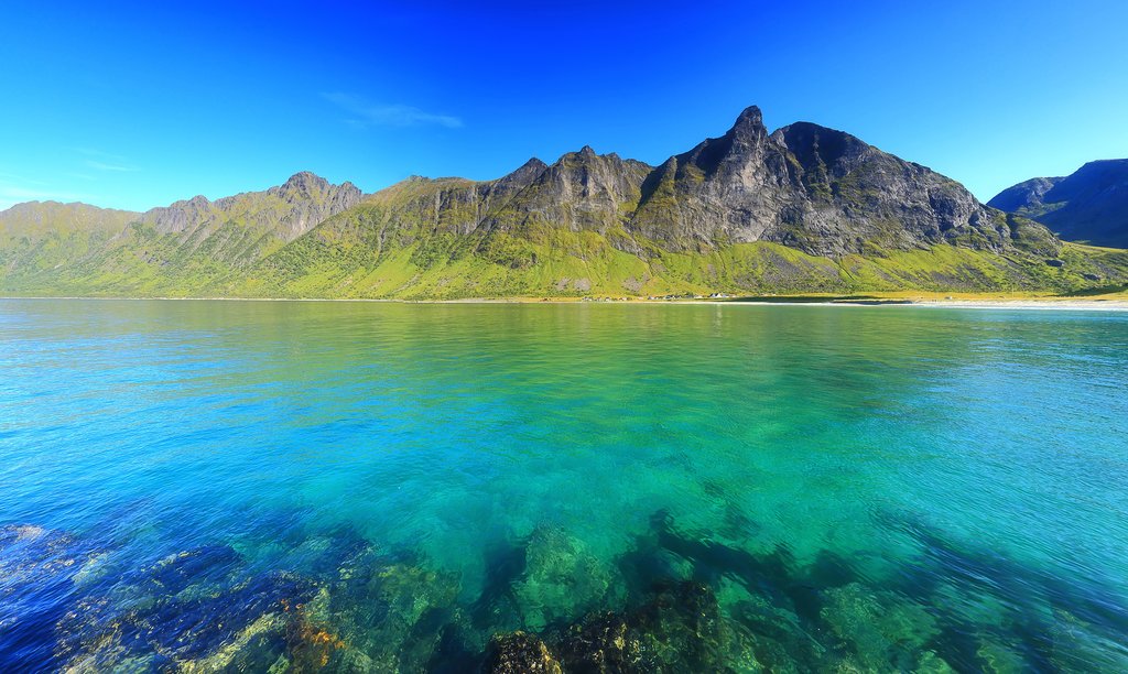 The landscapes of this district and archipelago tend to be much wilder than other areas in Northern Norway, with rounded mountains (compared to the jagged mountains in Lofoten), lush green valleys, inland lakes, and small villages close to the sea.